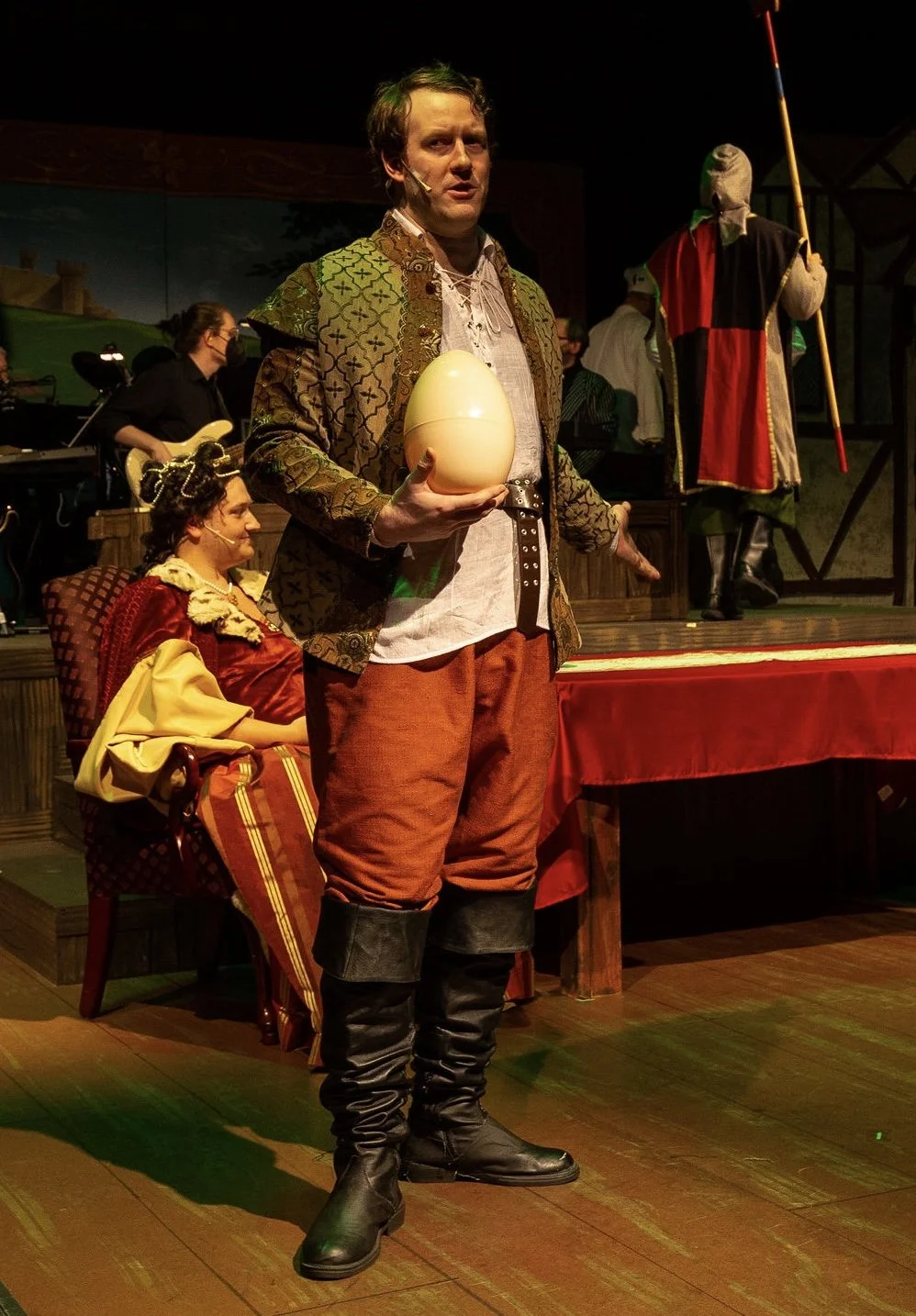 Nick Bottom in 'Something Rotten!' Directed by Neale Whitmore. Lighting by Alex Ammons. Set designed by Rodney Dobbs. Costumes by Michael Robinson. Photo: Alex Rain.